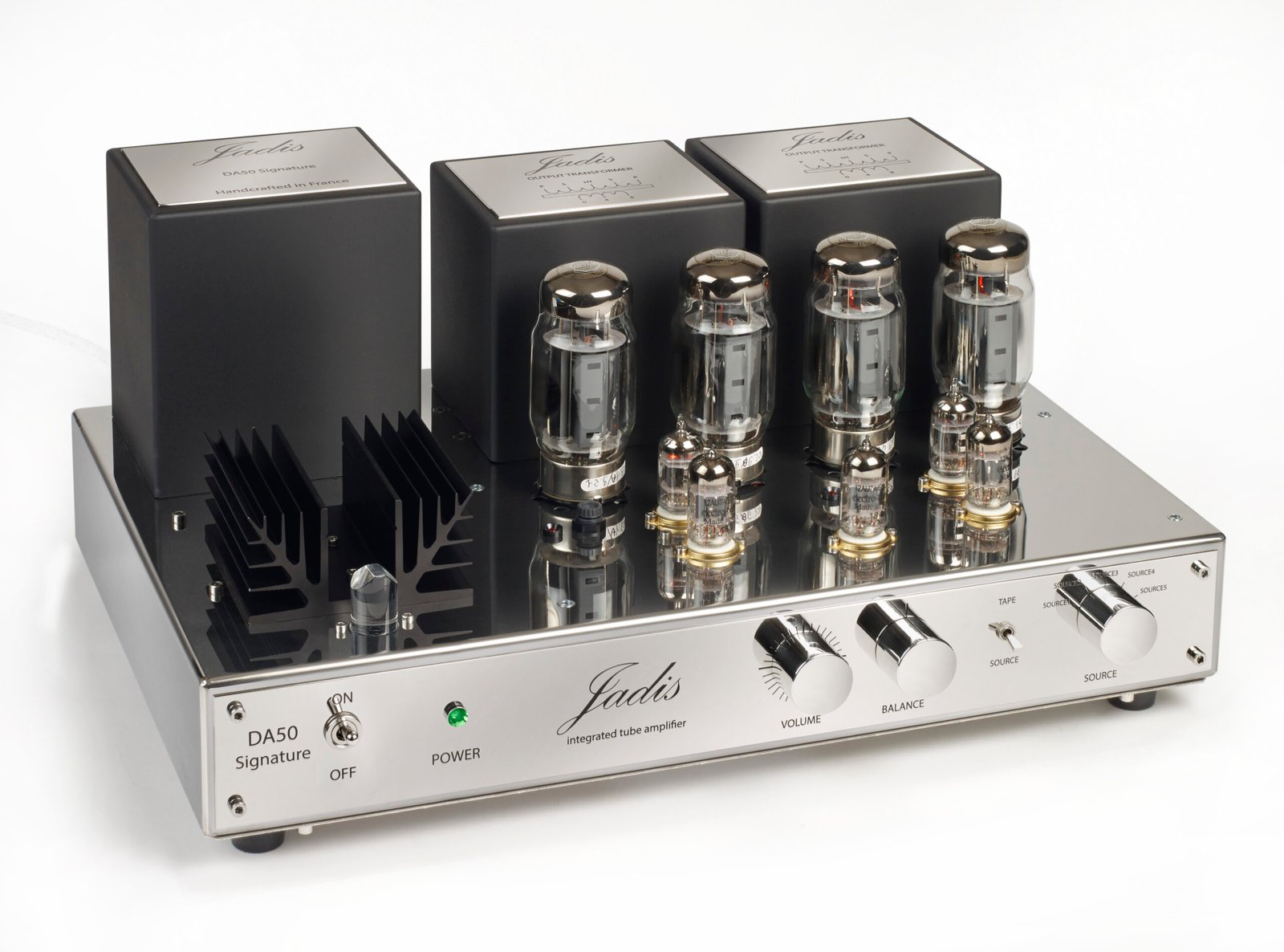 Jadis DA50 Signature is a new generation of integrated amplifiers from Jadis. It is definitely a big upgrade to Jadis Orchestra in every way. Its chassis is surgical stainless steel, looking aesthetically pleasing and is hard-wearing, guaranteeing the permanence of the amplifier.